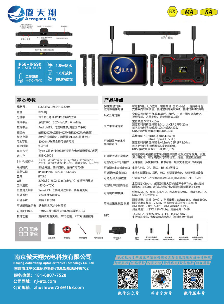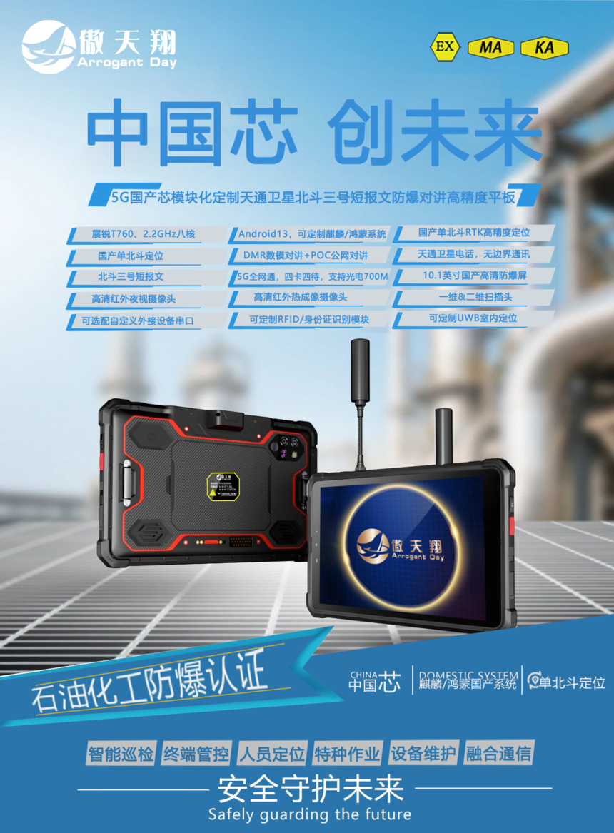 多模领航,智驭八方|傲天翔ATX-ZD950EX首款北斗短报文+天通卫星通讯+DMR对讲,5G单北斗高精度定位防爆平板终端发布!